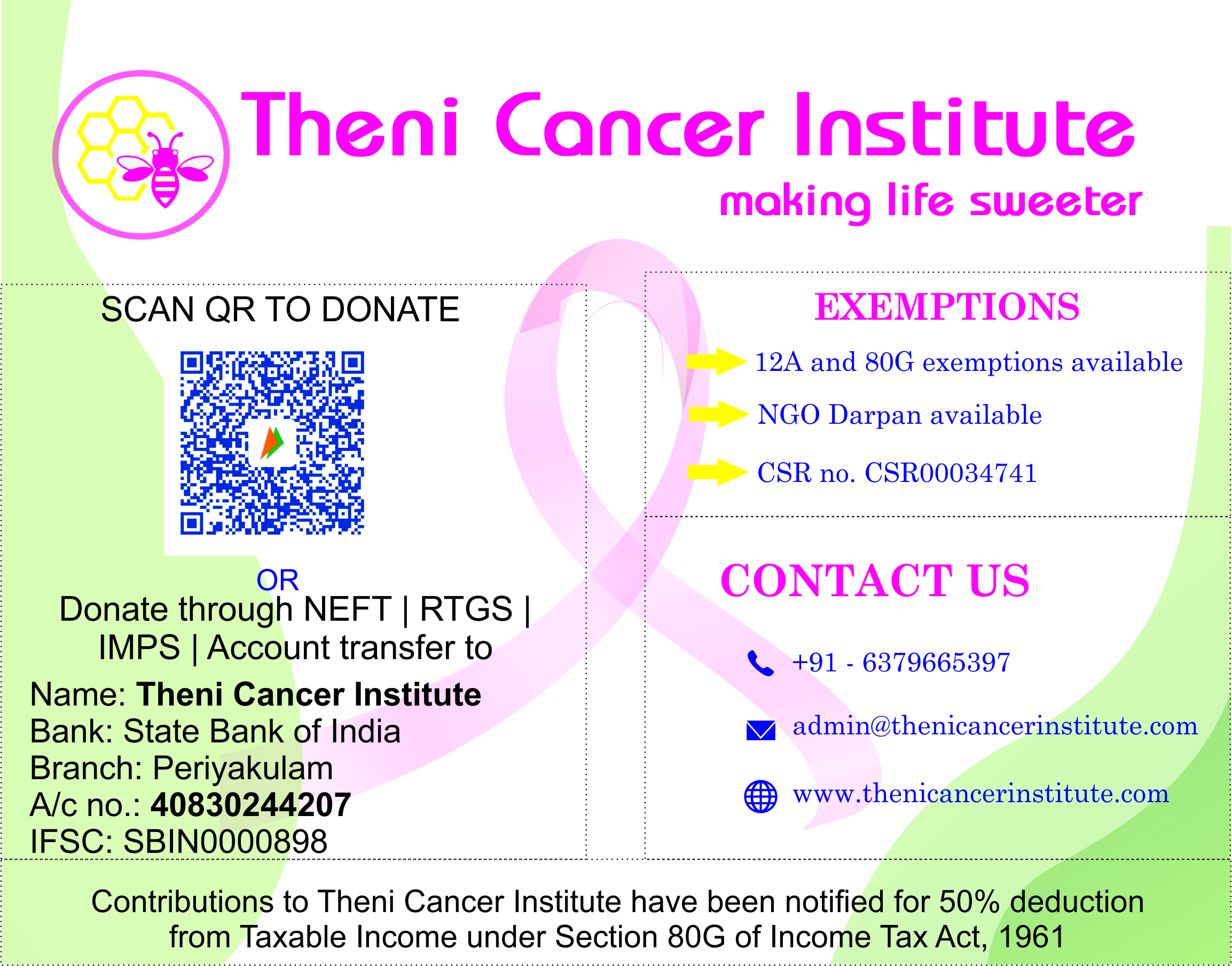 Theni Cancer Institute (TCI) is a NGO organization that focuses on cancer treatment, pain & palliative care and prevention of cancer. TCI is committed in prevention of cancer and to conceive, build and sustain programs to initiative & aimed at helping the cancer patients.